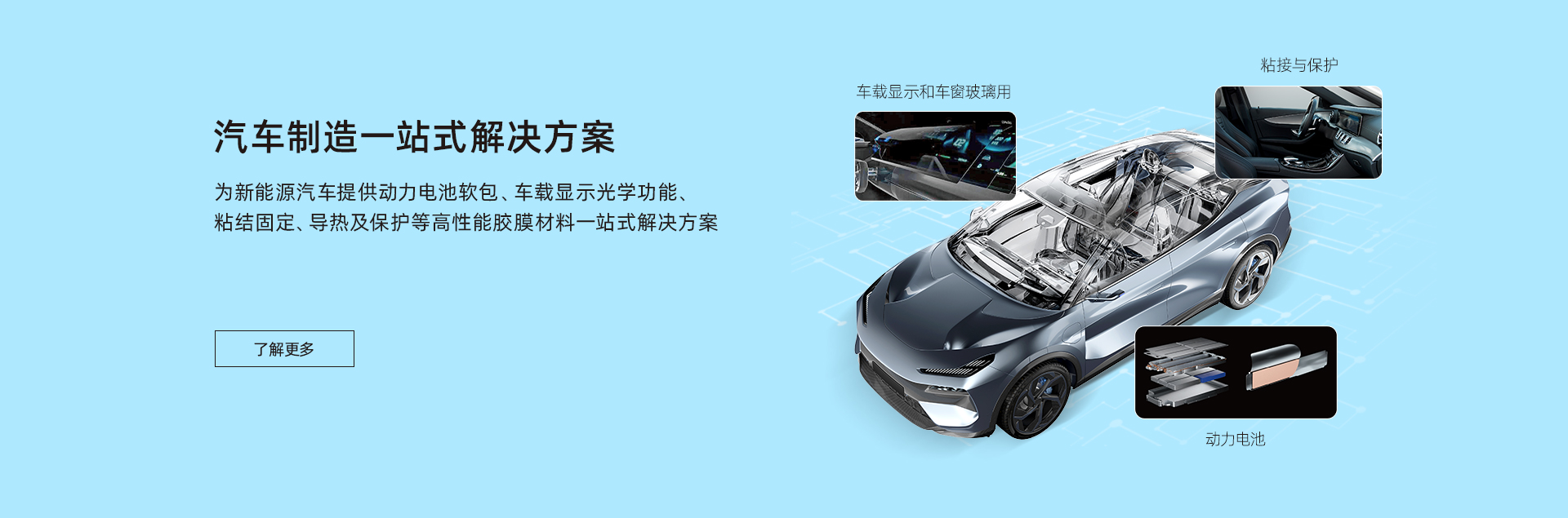 致力于為汽車制造、消費(fèi)電子、智慧顯示端口等行業(yè)客戶提供包括新能源材料、電子功能材料、光電顯示材料、有機(jī)硅材料在內(nèi)的產(chǎn)品研發(fā)、生產(chǎn)、銷售于一體化服務(wù),建立了專業(yè)的市場營銷與技術(shù)服務(wù)團(tuán)隊,為客戶提供高性能膠膜材料一站式解決方案。